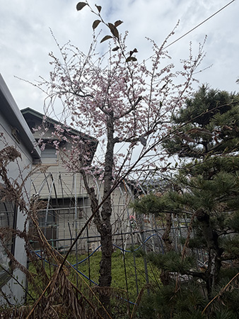 撮影場所:公園あずまやの桜がやっと開花しました |