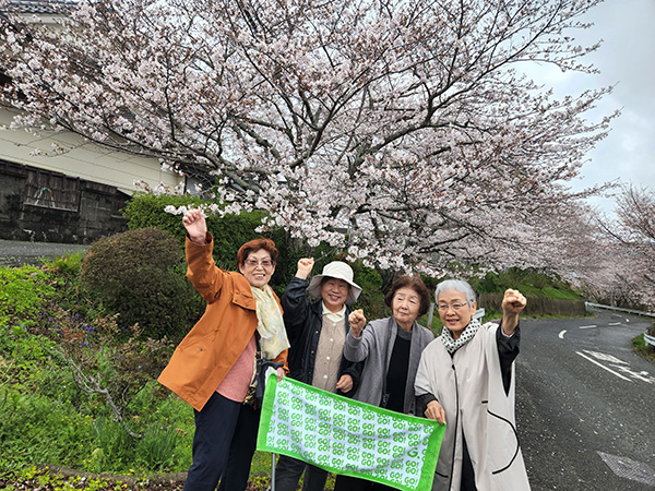撮影場所:自宅近くの桜道、「生活実践」の仲間と |